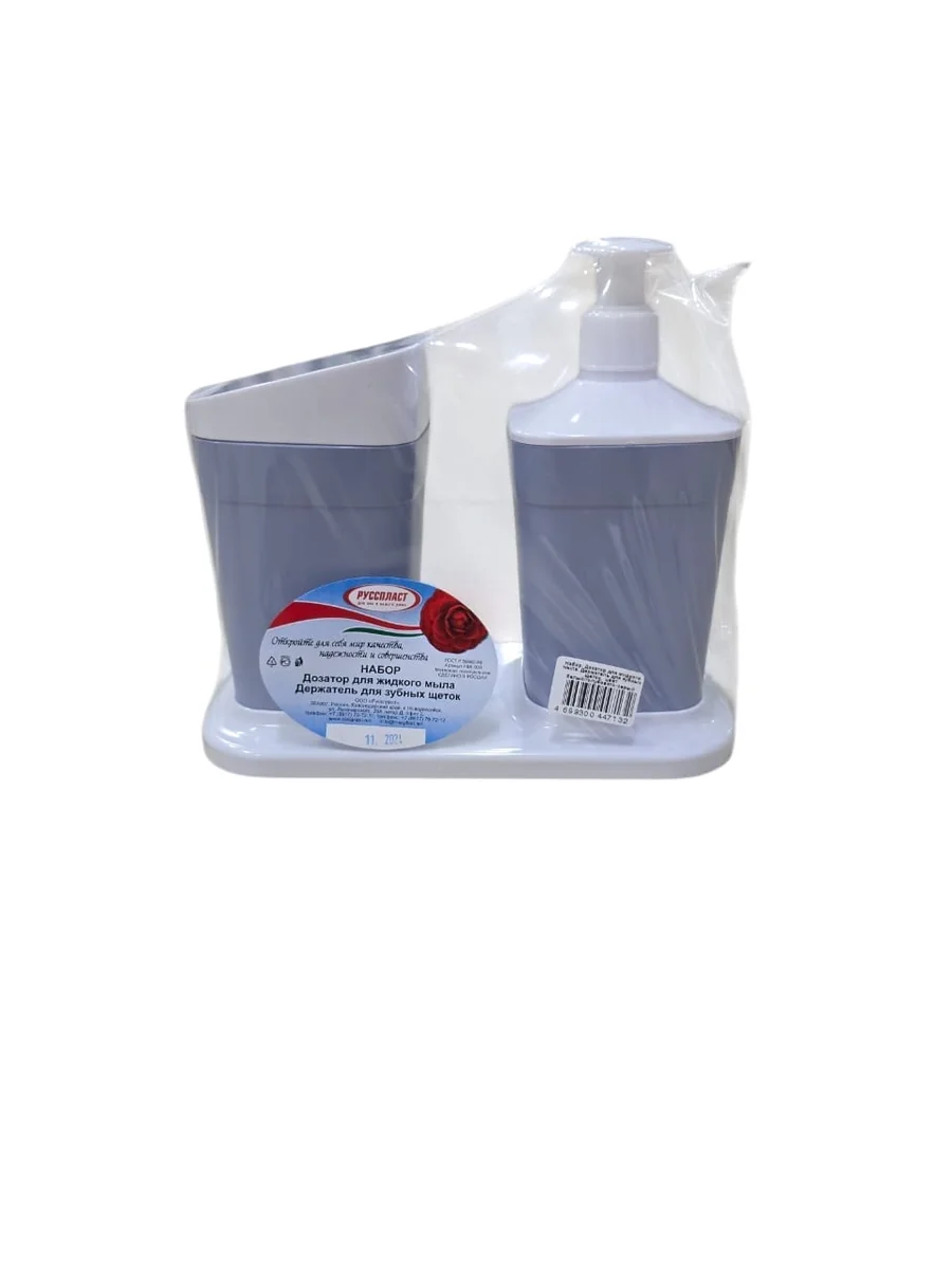 Дозатор д/жидкого мыла + Держатель д/зубных щеток РОССПЛАСТ НВК-900 ГОЛУБОВАТО СЕРЫЙ/БЕЛЫЙ