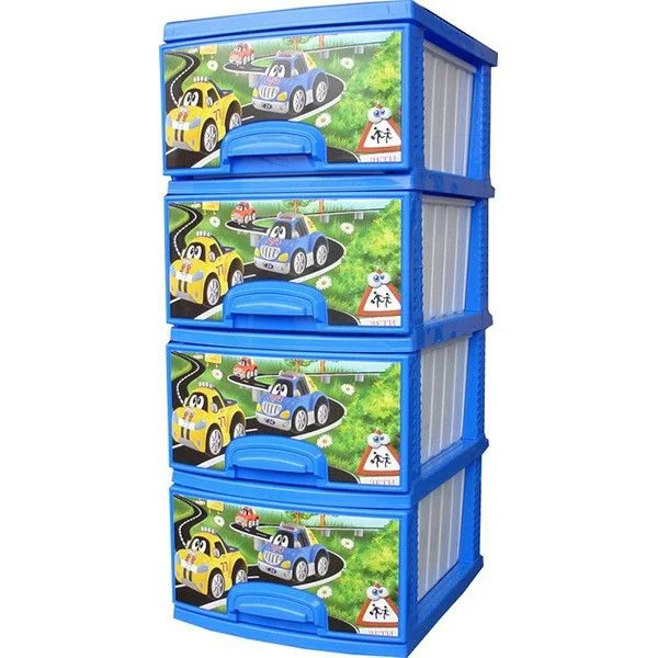 Комод 4 секции ДЕКОР МАШИНКИ белый/синий РОССПЛАСТ РП-421