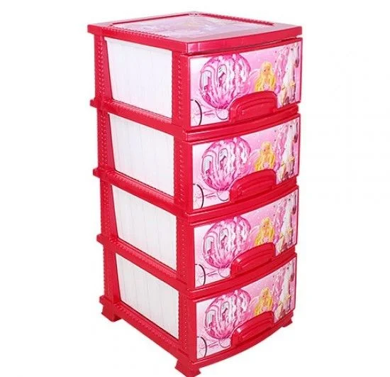 Комод 4 секции ДЕКОР ЗОЛУШКА красный/перламутровый РОССПЛАСТ РП-421