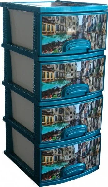 Комод 4 секции Венеция бирюзовый перламутровый/белый РОССПЛАСТ РП-421