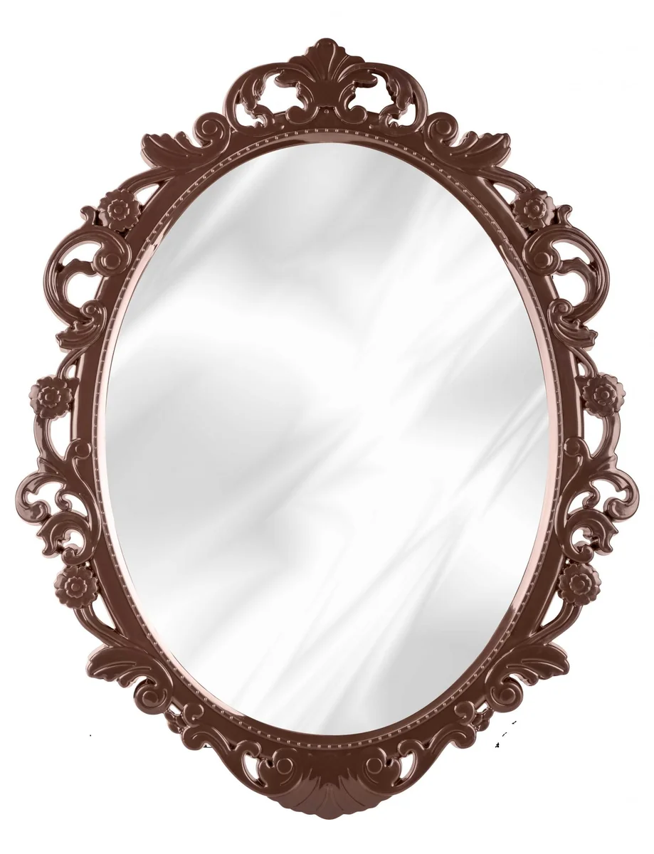 - Зеркало имеет овальную форму и глянцевую раму, имитирующую ажурные узоры. Зеркало имеет три цветовых решения, благодаря которым, оно подойдет как для ванной комнаты, так и для других комнат в доме. Для установки зеркала прилагается дюбель и шуруп.