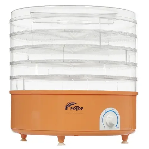 Сушилка для овощей и фруктов Ротор СШ - 002-06 – полезное и практичное приобретение для тех, кто знает толк в домашних заготовках на зиму. Устройство в серо-белом корпусе состоит из пяти ярусов, на которых можно разместить до 5 килограммов всевозможных продуктов. Следовательно, в одну пластиковую секцию помещается до 1 кг овощей, фруктов, ягод или грибов. Совокупный внутренний объем всех пяти секций составляет 20 л. Конвекционный нагреватель с мощностью 520 Вт создаст равномерное тепло внутри прибора, за счет чего овощи и фрукты высушиваются наилучшим образом, сохранив все полезные вещества и витамины. Вентилятор равномерно распределяет воздух внутри секций.