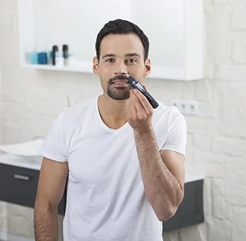 Триммер для стрижки волос Wet & Dry Vision легко удаляет нежелательные волосы в носу и ушах.
