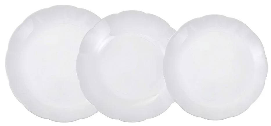 Набор столовый изготовлен из опалового стекла, рассчитан на 6 персон: Тарелка обеденная 26,5 см - 6 шт. Тарелка десертная 19,5 см - 6 шт. Тарелка суповая 23 см - 6 шт. Посуда из опала одна из самых прочных и безопасных. Отличная устойчивость к перепадам температуры. Можно использовать , как в микроволновой печи, так и в морозилке. Посуда обладает прекрасными характеристиками - ударопрочность, износостойкость, легкость.