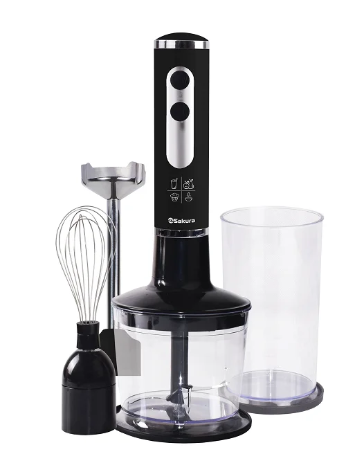 | Комплектация: | погружной блендер из нерж.стали, венчик, чоппер (0,5 л), градуированный стакан (0,6 л) с силиконовой крышкой-подставкой |