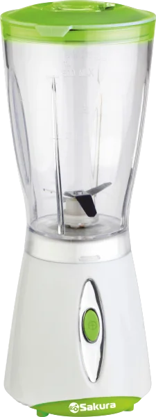Блендер настольный (стационарный), мощность 300 Вт, импульсный режим работы, пластмассовая чаша (0,5 л), клапан на крышке для добавления продуктов, пластиковый корпус.
