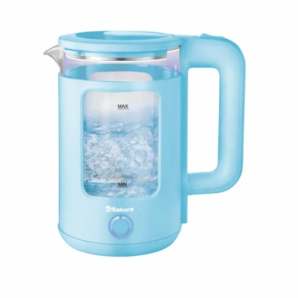 Чайник электрический стеклянный, объем 1.5 л, 1500-1800 Вт, корпус: стекло внутри, пластик снаружи, диск, вращение на 360°, точечная подсветка, отключение при закипании и включении без воды, индикатор работы