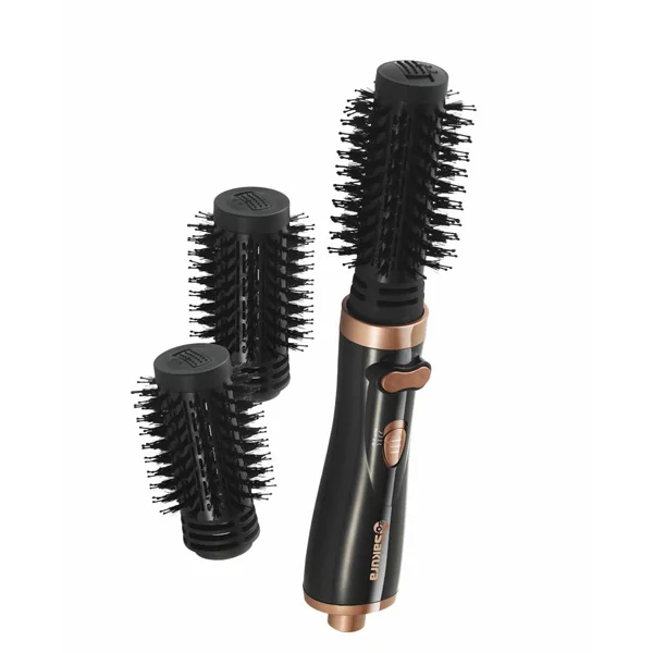 Фен-расческа SA-4205B, максимальная мощность 1200Вт, керамическое покрытие, 3 температурных режима (холодный, теплый и горячий воздух), 2 насадки-щетки диаметром 38 и 50 мм, автоматическое вращение щетки в обе стороны в режимах с подогревом воздуха, защита от перегрева, вращающийся шнур, петелька для подвешивания. Цвет - черный. Длина шнура - 1,72 м