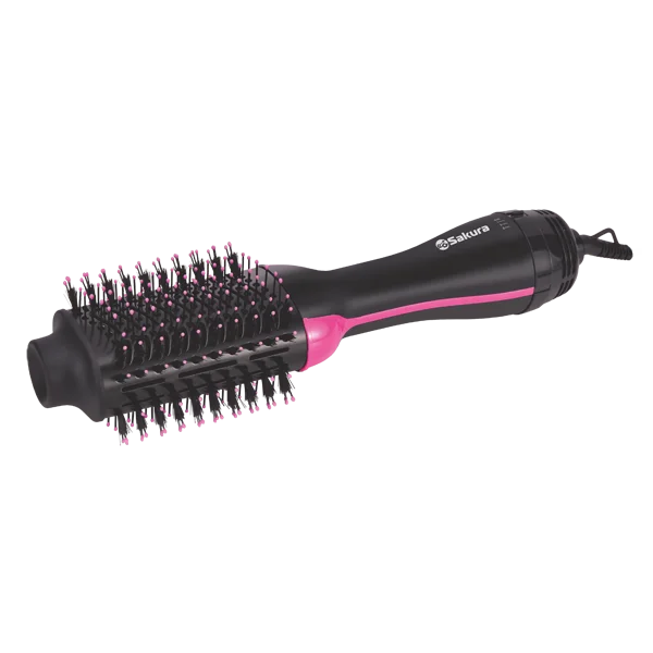 Фен-расчёска, максимальная мощность 1200Вт, 3 температурных режима (холодный, теплый и горячий воздух), защита от перегрева, петелька для подвешивания. Общая длина шнура питания 1,8 м. Цвет - черный/розовый, черный/бирюзовый.