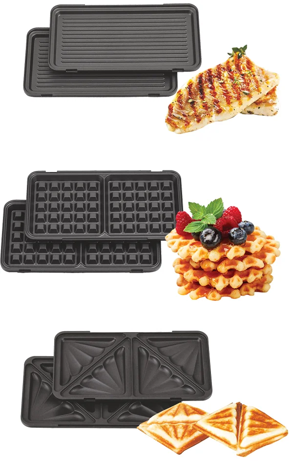 | Панели для жарки: | 3 в 1: съемные панели для приготовления сэндвичей, венских вафель, гриля; материал: металл |