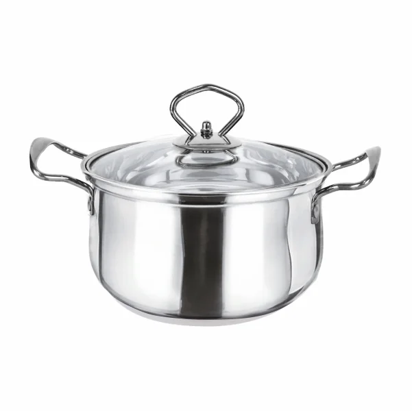 Кастрюля со стеклянной крышкой, объем 5,4 л, диаметр 24 см, высота: 13 см, корпус из нержавеющей стали матовый, толщина стенок 0,5 мм, капсулированное индукционное дно 0,5 мм, крышка из термостойкого стекла. Подходит для всех типов плит (газовой, электрической, индукционной, стеклокерамической, галогеновой)