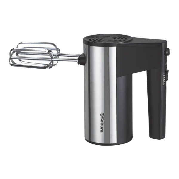 Миксер ручной, 400 Вт, 5 скоростей работы, турбо-режим, корпус и насадки из нержавеющей стали, 2 крюка, 2 венчика, защита от перегрева