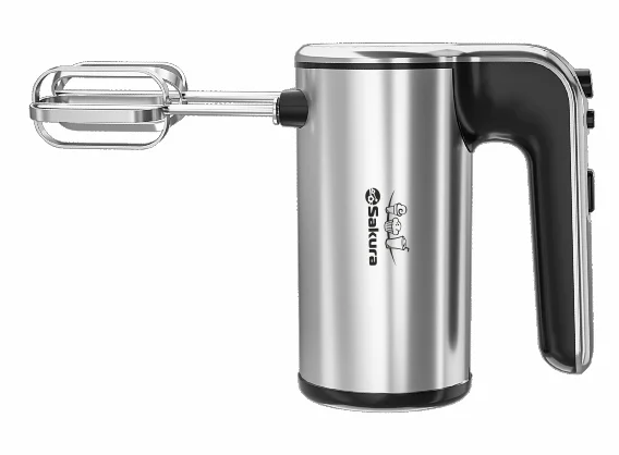 Миксер ручной, 600 Вт, ручной, 5 скоростей работы, турбо-скорость, корпус из нержавеющей стали, насадки из нержавеющей стали (венчики для взбивания, крюки для замешивания теста), защита от перегрева.