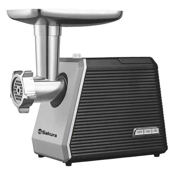 Мясорубка электрическая, 2000 Вт, функция реверс, корпус из эко-пластика, вместительный металл.лоток для продуктов, металл. шнек, толкатель, нож из нерж.стали, 2 металл диска для измельчения (5 мм, 7 мм), отсек для хранения насадок, отключение при перегреве. Аксессуары: насадка для кеббе и для приготовления сосисок.