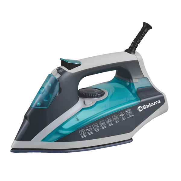 Мощность 2600Вт, резервуар для воды 400мл, керамическая подошва (233х122 мм), сухое глажение / глажение с пароувлажнением, регулировка подачи пара, мощный паровой удар, вертикальный пар, автоматическое отключение (через 8 мин без движения в вертикальном положении и через 30 сек в горизонтальном положении), самоочистка, защита от протекания и накипи (anti-drip и anti-calc), световой индикатор работы, кабель питания 2 м. Цвет: черный/синий, серый/бирюзовый.
