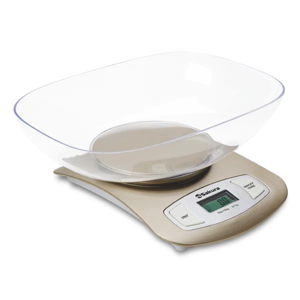 Весы кухонные электронные, максимальная нагрузка 5 кг, цена деления 1 г, ЖК дисплей, учет веса тары, автоматическое отключение, индикатор перегрузки и заряда батарейки, питание 1х3 В (CR2032), пластиковый корпус