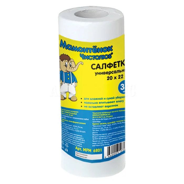 Салфетки универсальные Мамонтенок чистолюб 20*22см 70шт/рулон MPM6818