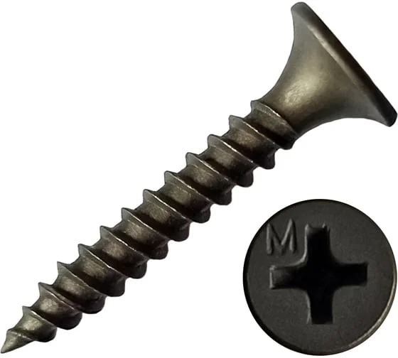 Саморез ГКМ ГКМ 3.5х25 представляет собой классический остроконечный шуруп с резьбой по всему стержню. Имеет фосфатное покрытие, надёжно защищающее от коррозии. Подходит для потайного монтажа - может быть утоплен полностью.