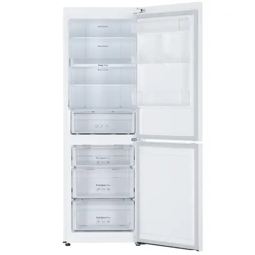 Панель с сенсорными кнопками и цифровым дисплеем позволяет легко управлять температурными параметрами. Режим «Суперзаморозка» быстро понижает температуру, сохраняя максимальное количество полезных свойств в продуктах. Из особенностей Samsung RB29FERNDWW – регулируемые ножки, инверторный компрессор и звуковая индикация открытой двери.