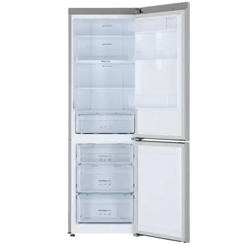 Холодильник с морозильником Samsung RB33A32N0SA/WT – стильная техника для кухни с системой No Frost в обеих камерах. Снизу расположен морозильник на 98 л, способный на максимальной мощности в сутки заморозить 12 кг мяса. Полностью выдвижной ящик легко вытаскивается для очистки от загрязнений. При отключении света в камерах сохраняется холод на 20 ч, что позволяет спокойно пережидать сбои в сети.