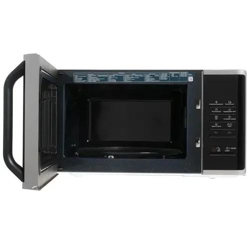 Samsung MS23K3513AS обладает вместимостью 23 л и простым кнопочным управлением с дисплеем. С помощью таймера можно установить определенное время работы до 99 минут. В комплект входят стеклянное поворотное блюдо и металлическая решетка для приготовления в режиме гриль.