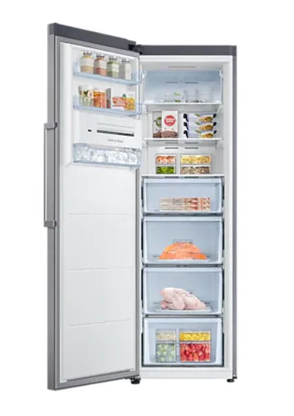 Компактный льдогенератор занимает меньше места, поскольку он встроен в дверцу. Благодаря компактности льдогенератора, экономится место для хранения продуктов и освобождается больше места на полках. Однако это не означает, что у вас будет меньше льда, поскольку он замораживает воду в 5 раз быстрее, а высыпать готовые кубики льда можно одним движением рычажка