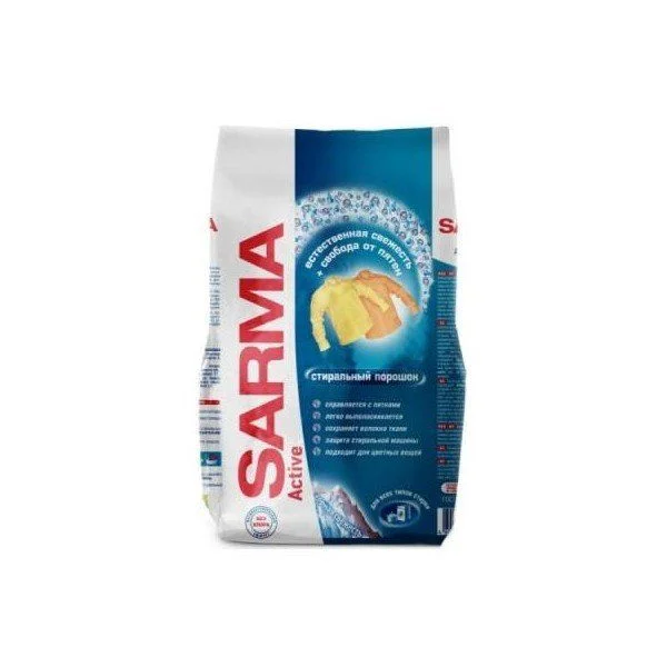Стиральный порошок универсальный Sarma-Active (Сарма) Горная свежесть предназначен для стирки хлопчатобумажных, льняных, синтетических и смешанных тканей, кроме изделий из шелка и шерсти, в автоматических, активаторных стиральных машинах, а также вручную.