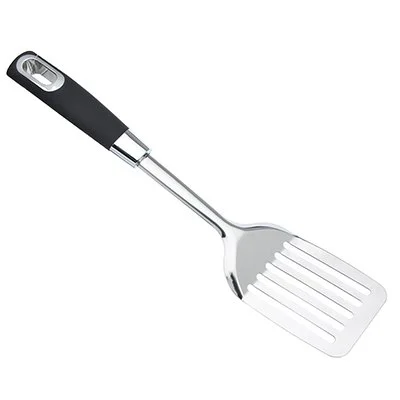 Широкая кулинарная лопатка SATOSHI Имари из нержавеющей стали со специальными прорезями идеально подходит для работы со сковородой. Удобная ручка обеспечивает комфорт при использовании. Нержавеющая сталь не боится температурного шока и не впитывает запахи, инструмент легко мыть вручную или в посудомоечной машине. Эргономичная ручка посуды обеспечит удобный хват, предотвращая выскальзывание из рук.