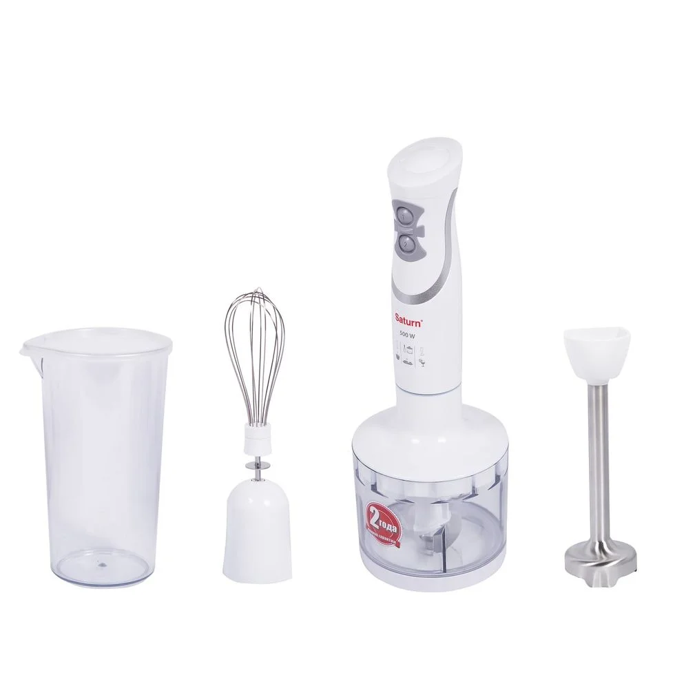 Модель SATURN ST-FP9084 имеет эргономичный дизайн, кнопки переключения скорости расположены спереди на корпусе, а удлинённая нога блендера упрощает работу и позволяет легко перемалывать продукты в высокой посуде.