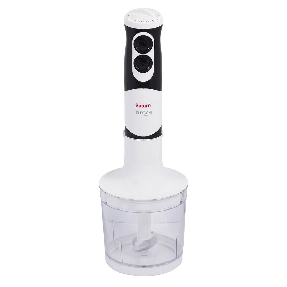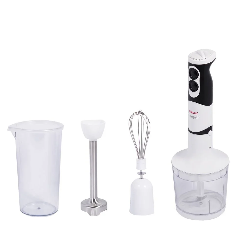 Новый погружной блендер SATURN ST-FP0051 New отличается хорошим функционалом. Модель сочетает в себе функции трёх основных приборов, которые просто незаменимы на кухне каждого. Имея в своей комплектации насадку-венчик, ногу блендера и чоппер, ST-FP0051 New может заменить миксер, тёрки, и прочие приборы.