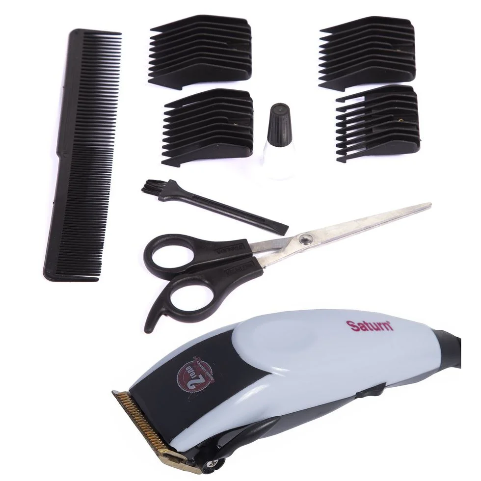 - Аксессуары: 4 насадки, щеточка, ножницы, расческа, масло для ухода