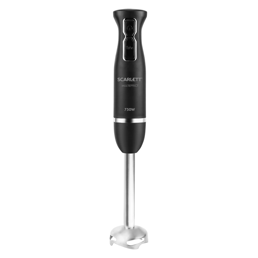 Погружной блендер Scarlett SC-HB42F39 – отличный выбор для приготовления коктейлей, детского питания, смузи, супов и других блюд и напитков. Прибор имеет мотор оптимальной мощности 750 Вт., работающий в импульсном режиме средней скорости и Turbo режиме. Модель оснащена ножом MULTIEFFECT с двумя укороченными вертикальными лезвиями для переработки самых твердых продуктов. Все погружные части и ножи блендера выполнены из долговечной нержавеющей стали марки STEEL PRO, которая отлично подходит для приготовления блюд любой температуры. Блендер укомплектован мини-измельчителем на 0.6 л и венчиком для взбивания, с котрым вы быстро и с комфортом сможете замесить тесто, а также взбить белки или сливки. Прибор выполнен в классическом дизайне из черного пластика, подчеркнутом хромированной декорацией.