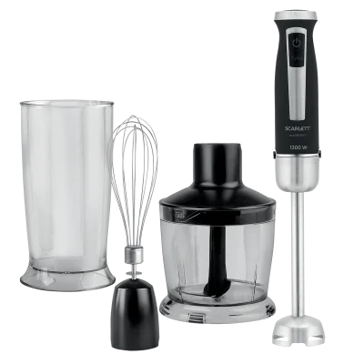 Блендер Scarlett SC-HB42F59 мощностью 1200 Вт облегчит процесс приготовления множества блюд. Перетрет овощи или фрукты в пюре всего за несколько минут, смешает ингредиенты для молочного коктейля, взобьет пышный крем для торта и даже превратит мясо в фарш.