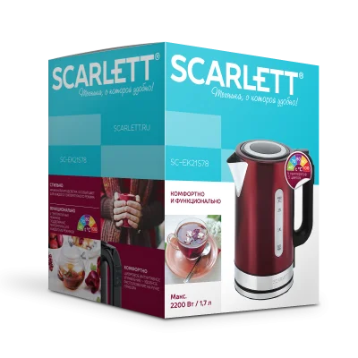 Электрический чайник SC-EK21S78 с увеличенным объемом 1.7 л оснащён автоматической системой открытия крышки. Выбор температуры на ручке позволит сэкономить место и подобрать правильную температуру для любых видов чая. Мультиподсветка позволит легко ориентироваться в выборе режимов. Эргономичная ручка, закрытый нагревательный элемент сделают эксплуатацию прибора еще проще и комфортнее. Съемный нейлоновый фильтр предотвратит попадание накипи в напиток. Стильный красный цвет станет удачным решением на кухне!