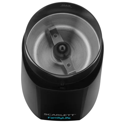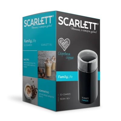 Кофемолка SC-CG44505 выполнена в классическом черном цвете. С помощью импульсного режима, кофе на 2 чашки будет готов уже буквально за пару секунд. Ножи из экостали одинаково качественно измельчат кофе, орехи, специи или сахар. Для удобства в эксплуатации предусмотрена прозрачная крышка, которая поможет осуществлять контроль за процессом помола.