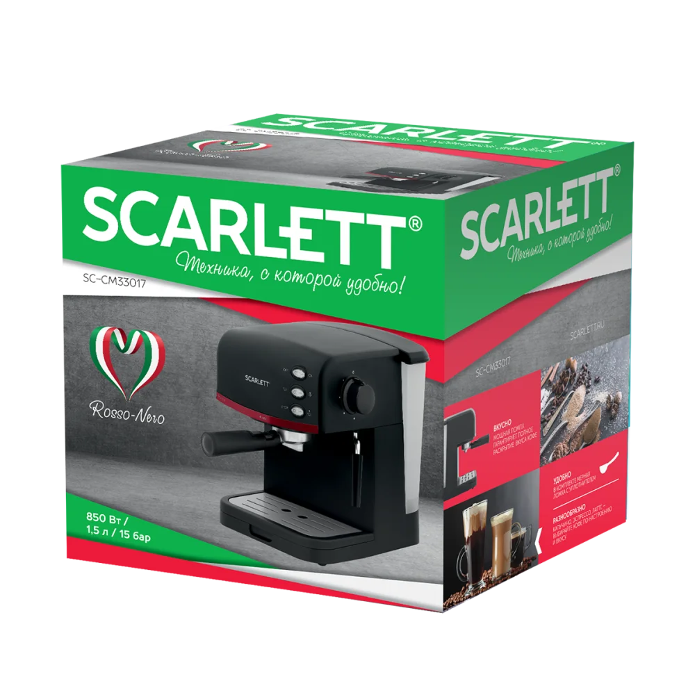 Устройство обладает высокой мощностью в 850 Вт, удобно в управлении и имеет подсветку кнопок управления. Приготовление напитка под давлением в 15 бар сохраняет его изысканный кофейный аромат. Прибор оснащен съемным лотком для капель, мерной ложкой с уплотнителем, а также держателем фильтра с возможностью приготовления двух чашек кофе одновременно. Этот набор опций сделает приготовление кофе максимально комфортным и позволит максимально раскрыть его вкус. Капучинатор для нагревания и взбивания молока позволяет насладиться латте или капучино, создавая красивую и густую пенку на молоке. Увеличенный резервуар объёмом 1.5 Л для воды делает кофеварку подходящей как для использования большой семьёй, так и в офисе.