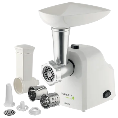 Мясорубка Scarlett SC-MG45M07 – это прибор высокой производительности для измельчения сырых и обработанных продуктов, натирания и шинковки, а также приготовления колбас и кеббе. С помощью этой модели вы сможете легко и быстро переработать даже жилистое мясо или твёрдые овощи. Мясорубка оснащена износостойким ножом, выполненным из качественной высокопрочной стали. Помимо насадки-мясорубки для приготовления фарша из разных продуктов в комплектацию входят тёрка и шинковка для овощей и фруктов, а также насадки для приготовления колбас и кеббе, чтобы максимально расширить возможности прибора.
