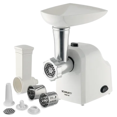 Мясорубка Scarlett SC-MG45M20 – это прибор высокой производительности для измельчения сырых и обработанных продуктов, натирания и шинковки, а также приготовления колбас и кеббе.