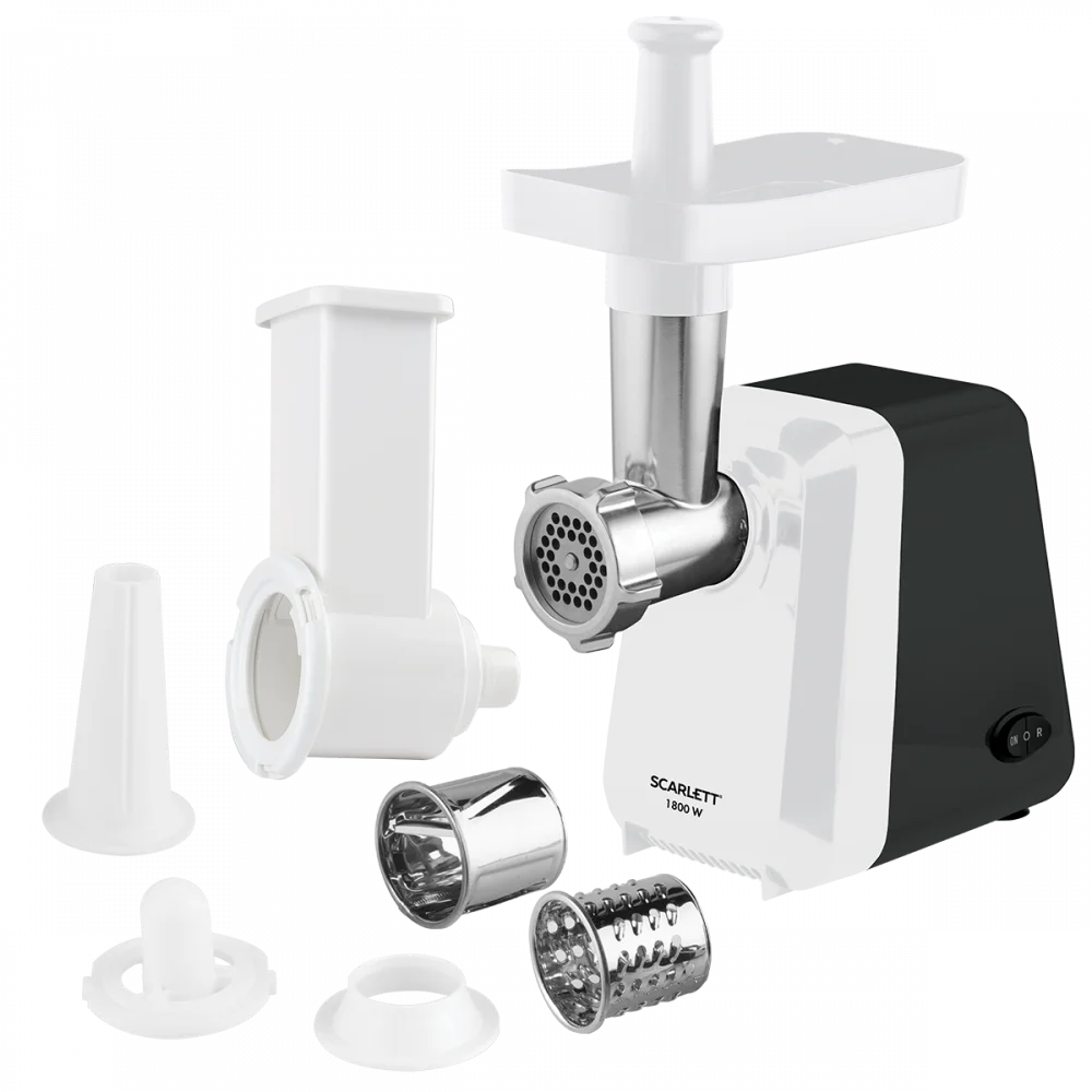 Электромясорубка Scarlett SC-MG45M22 – универсальный кухонный помощник, который облегчит приготовление многих блюд. Она укомплектована металлическим диском для фарша, дополнительной насадкой с барабанами для тёрки и шинковки, а также специальными насадками для домашних колбас и кеббе.