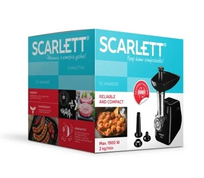 Компактная и мощная мясорубка SC-MG45S55 ― надежный помощник на Вашей кухне. Высокая мощность мотора мясорубки позволяет перерабатывать любое мясо в однородный фарш, а производительность модели достигает 2 кг/ мин. В комплекте 2 насадки: 2 перфорированные решетки с отверстиями 5 мм, насадки для кеббе и для приготовления домашней колбасы. Высокопрочный металлический шнек и нож из высококачественной нержавеющей стали обладают повышенной износостойкостью, тем самым повышая эффективность работы и продлевая срок службы прибора. Технология SAFE PRO позволяет предотвратить перегрев и перегрузку двигателя, тем самым продлевая срок его эксплуатации. Функция «Реверс» позволяет прокручивать мясо в обратном направлении, в случае если оно застряло. Процесс разборки мясорубки занимает минимальное время: достаточно нажать кнопку отсоединения горловины и отделить все металлические части друг от друга. Стильный и лаконичный дизайн мясорубки SC-MG45S55 идеально подойдет для Вашей кухни.