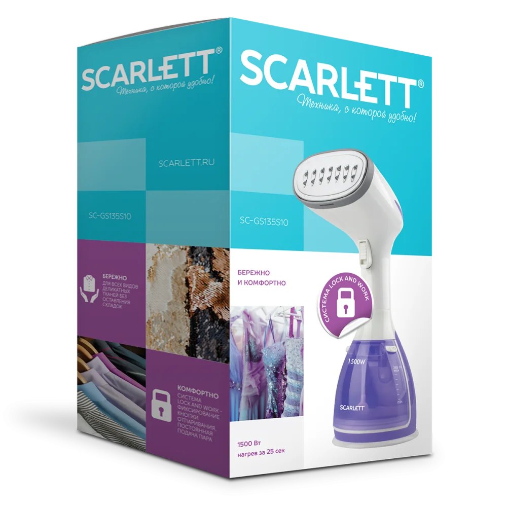 Ручной отпариватель SC-GS135S10 избавит вас от складок и освежит одежду без какой-либо гладильной доски! Пальто, куртки, рюши, оборки, кокетки, прочие декоративные элементы - не проблема. Прибор выдает пар до 60 г/мин. Резервуара объемом 280 мл достаточно для того, чтобы привести в порядок несколько юбок, платьев, брюк и т.п. Благодаря мощности 1500 Вт долго ждать не придется – всего 25 секунд, и можете приступать! А для более качественной обработки одежды можно использовать насадки, входящие в комплект.