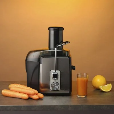 Получение витаминов и полезных микроэлементов легко с центрифужной соковыжималкой SC-JE50S28 мощностью 1200 Вт. Емкость для сбора мякоти 1000 мл и емкость для сбора сока 600 мл в комплекте. Корпус и фильтр выполнены из нержавеющей стали, что гарантирует долговечное использование соковыжималки. Широкая горловина 75 мм позволяет загрузить целые фрукты и овощи.