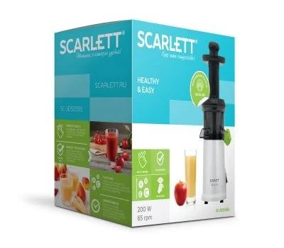 Scarlett SC-JE50S55 – соковыжималка шнекового типа. Отжим производится медленно, путём сжимания и пропускания плодов через уникальный фильтр, произведенный из тритана, который позволяет избежать окисления сока и максимально полно сохранить его естественный вкус, витамины и питательные вещества. Кроме того, тритан долговечен и не впитывает в себя запахи и цвет. Эта модель даст Вам возможность каждый день наслаждаться полезными напитками.