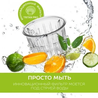 - 1) Долговечный фильтр из Тритана — можно мыть в посудомоечной машине