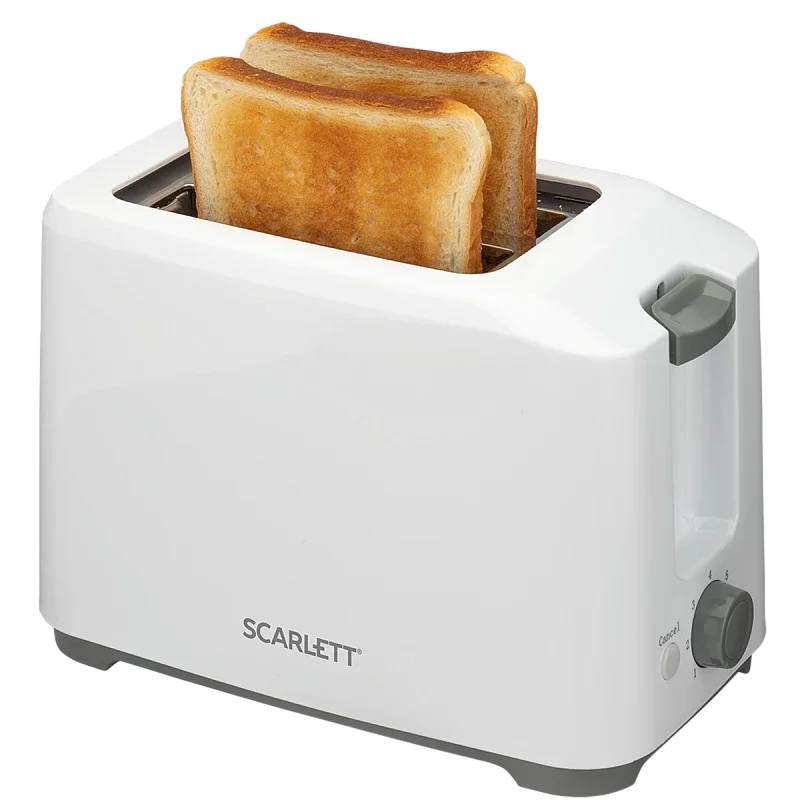 Тостер Scarlett SC-TM11019 белого цвета — прибор для двустороннего поджаривания двух тостов.