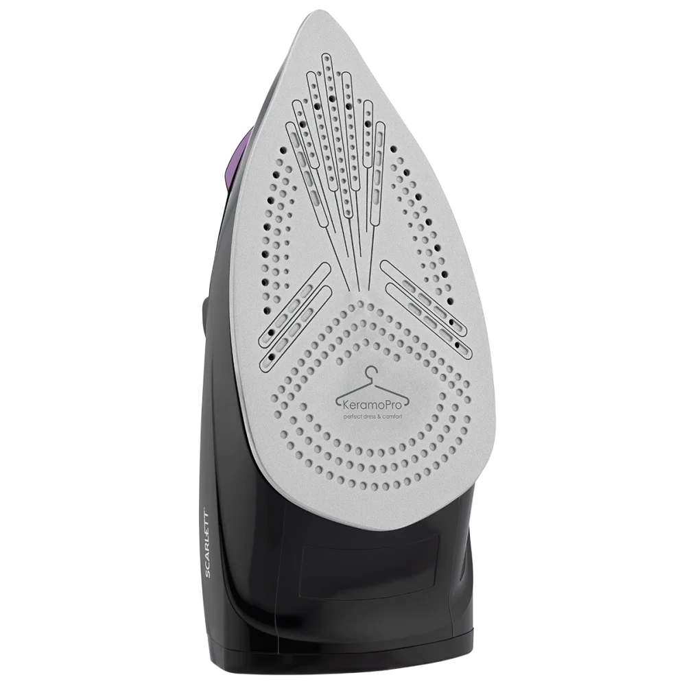 Утюг Scarlett SC-SI30K57 с пластиковым корпусом фиолетово-чёрного цвета снабжен идеально гладкой подошвой с керамическим покрытием KeramoPro, которая обеспечивает отличное скольжение и бережное отношение ко всем видам тканей. Прибор мощностью 2400 Вт легко скользит по поверхности любой ткани и может эффективно отпаривать вещи, постоянно выдавая до 35 граммов пара в минуту в режиме глажения с паром. В режиме парового удара создает 140 гр. пара в минуту, расправляя даже самые непослушные складки. Утюг снабжен автоотключением: выключится вовремя, если оставить его без присмотра в течение 30 сек в горизонтальном положении и 8 мин - в вертикальном. Есть функция вертикального отпаривания: это даёт возможность приводить в порядок пальто или костюмы даже на вешалке. Функция анти-капля позволяет избежать появления случайных капель на одежде. Система защиты от накипи совместно с функцией самоочистки существенно продлит срок службы утюга и убережет его от накипи. Оптимальный вес способствует разглаживанию неровностей без излишней нагрузки на руки. Удобный шнур длиной 180 мм - пластичный, гибкий, оснащен шаровым креплением, защищающим от перекручивания.