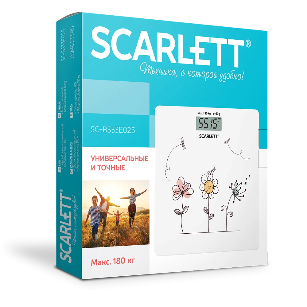 Напольные весы SC-BS33E025 - это простой и удобный способ контролировать свой вес! Благодаря высокочувствительным датчикам погрешность составит не более одной цены деления: 50 г. Максимальный вес: 180 кг. Ультратонкий дизайн обеспечит компактное хранение. Материал платформы - высокопрочное закаленное стекло. Автоматическое включение и выключение позаботятся об экономном расходе заряда батареи. Индикатор перегрузки и индикатор батареи обеспечат комфортную эксплуатацию. Большой жидкокристаллический дисплей делает эксплуатацию весов комфортнее. Прорезиненные ножки обеспечивают дополнительную устойчивость и предотвращают скольжение. А приятное цветовое решение и яркая композиция позволят прибору не только вписаться в любой интерьер, но и радовать глаз каждый день.