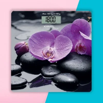 Напольные весы SC-BS33E067 - это простой и удобный способ контролировать свой вес! Благодаря высокочувствительным датчикам погрешность составит не более одной цены деления: 100 г. Максимальный вес: 180 кг. Ультратонкий дизайн обеспечит компактное хранение. Материал платформы - высокопрочное закаленное стекло. Автоматическое включение и выключение позаботятся об экономом расходе заряда батареи. Индикатор перегрузки и индикатор батарейки обеспечат комфортную эксплуатацию. Большой жидкокристаллический дисплей 74 x 30 мм делает эксплуатацию весов комфортнее. Прорезиненные ножки придают дополнительной устойчивости и предотвращают скольжение. А приятное цветовое решение и яркая композиция позволят прибору не только вписаться в любой интерьер, но и радовать глаз каждый день!