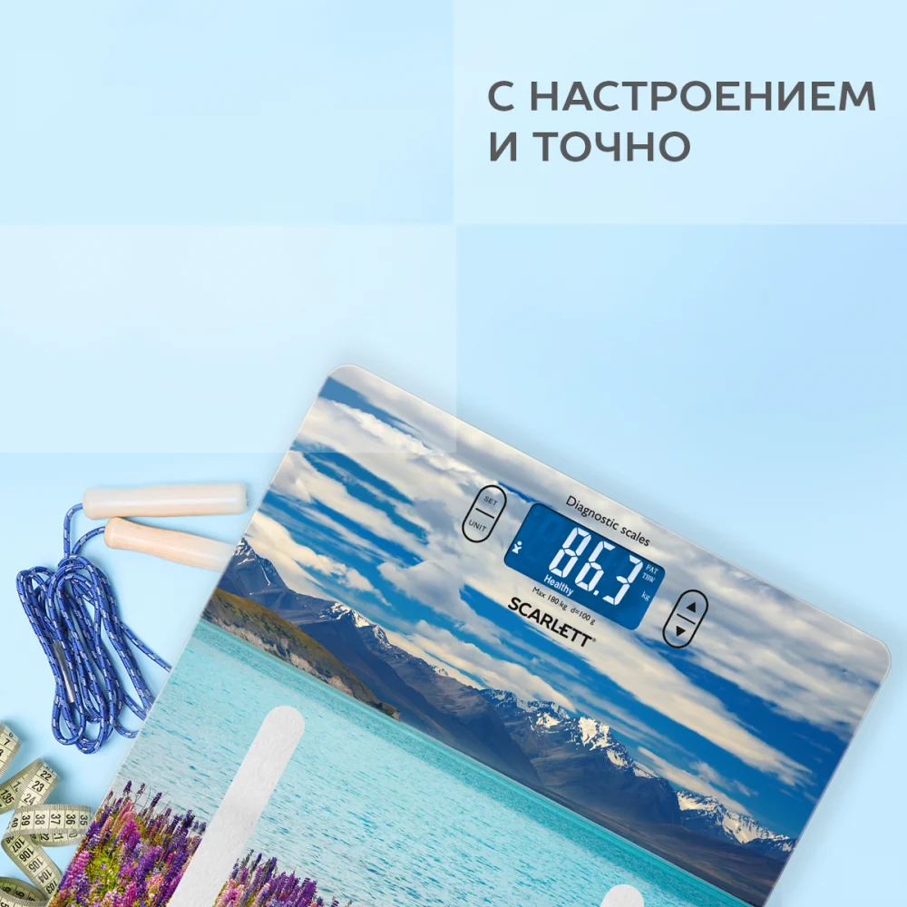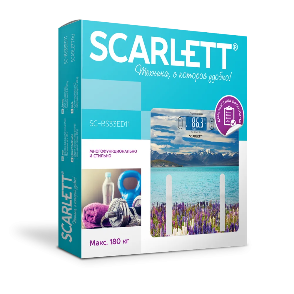 Весы SCARLETT SC-BS33ED11 - простой и удобный способ контролировать свой вес! Прибор 3 в 1: взвешивание, определение процента воды, измерение процента жира. Высокочувствительные датчики гарантируют точность, качественное высокопрочное стекло и большой жидко-кристаллический дисплей. Автоматическое включение/выключение экономит заряд батареи. Прорезиненные ножки для предотвращения скольжения позаботятся о безопасности эксплуатации.
