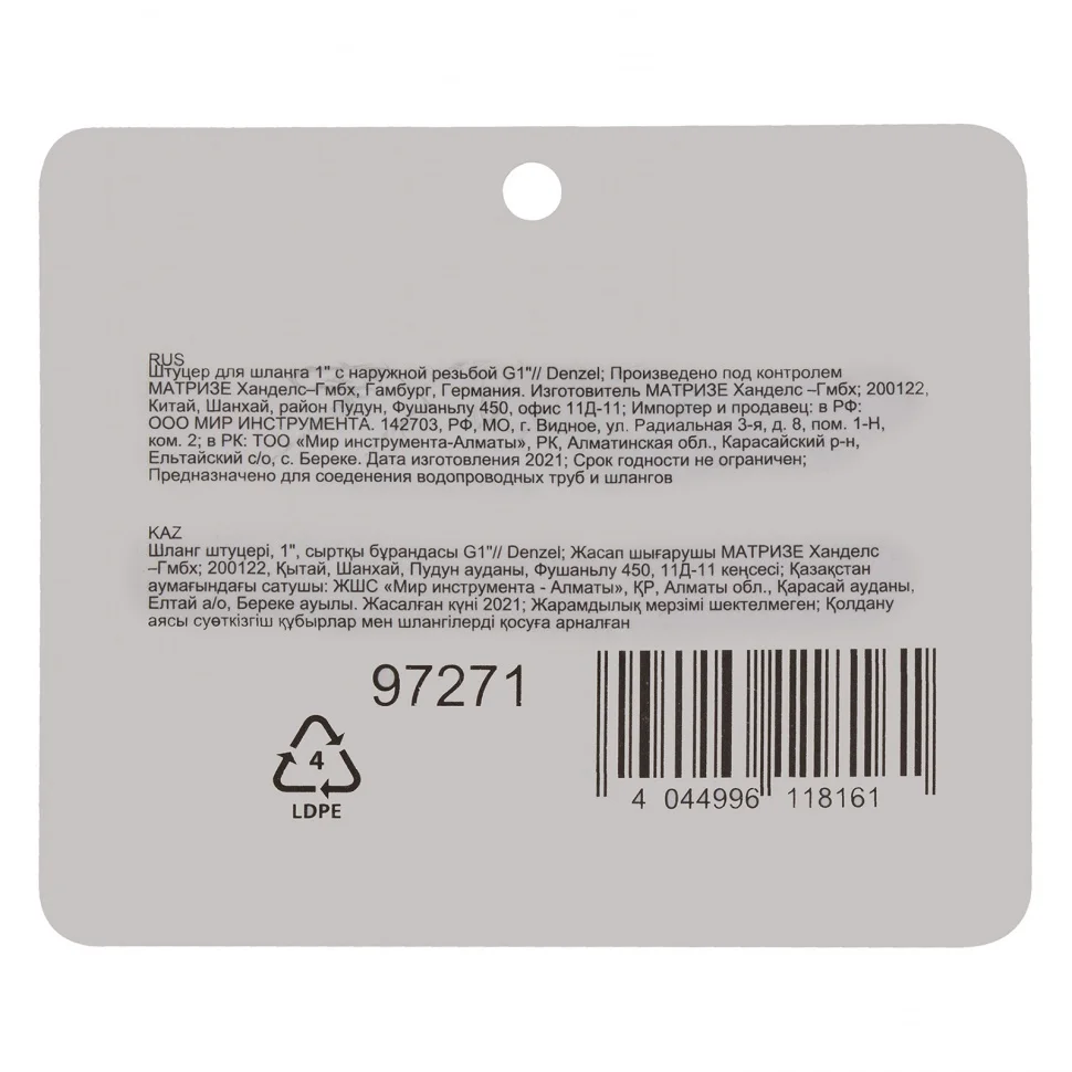 Штуцер для шланга 1" с наружной резьбой G1" Denzel